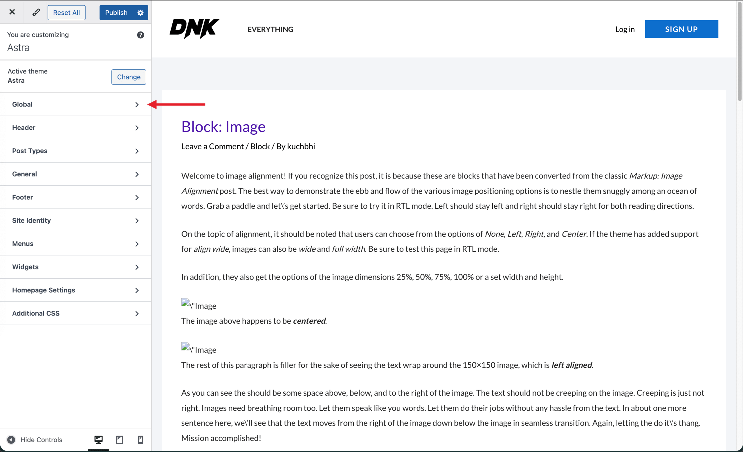 - Navigate to Appearance > Customize from your WordPress dashboard.